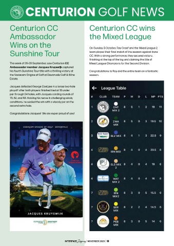 The week of 26–28 September, saw Centurion CC Mixed League Champions for the Second Division.