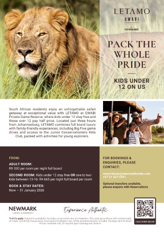 R9 330 per room per night full board CONTACT: For South African residents, there’s a new paired with award-