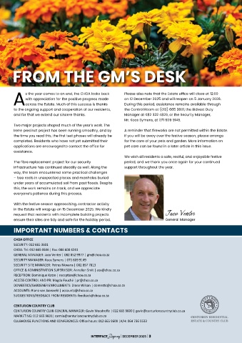 CENTURION COUNTRY CLUB GENERAL MANAGER: Gavin Woodroffe | 012 665 9600 | gavin@centurioncountryclub.co.za