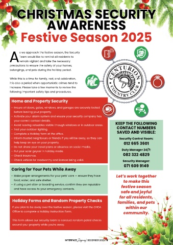 • Inform trusted neighbours or friends if you will be away, so they can Security Control Room: