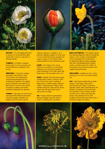 HISTORY - The red poppy became various cuisines, in salads or as a BEES & BUTTERFLIES - The bright colours