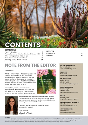 Interface is a monthly magazine of the Centurion Golf Estate. It is intended for the residents of Centurion Golf Estate. It is published on behalf of the CHOA by Estates in Africa (Pty) Ltd. Articles printed in Interface, do