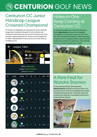 On Sunday, 1st September, the Centurion CC Junior Handicap On Sunday, 8th September, during the Chairman’s