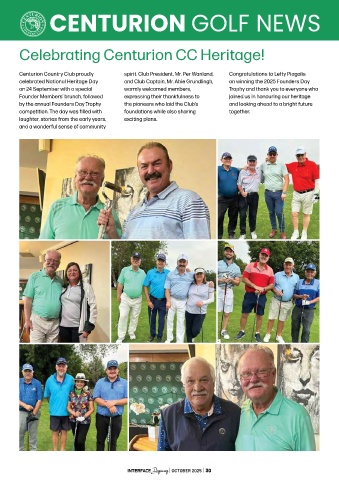 Centurion Country Club proudly spirit. Club President, Mr. Per Wanland, Congratulations to Lefty Piagalis