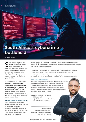 outh Africa is digitising fast. Espionage groups continue to operate, but the financial side of cybercrime is