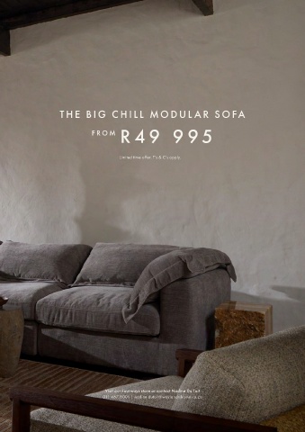 T H E B I G C H I L L MO DU L A R S O FA R 4 9 9 95 F R OM Limited time offer. T’s & C’s apply. Visit our Fourways store or contact Nadine Du Toit 011 467 8001 | nadine.dutoit@weylandtshome.co.za