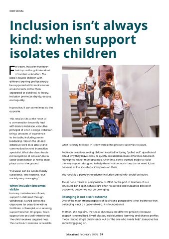 specialist. What she describes is Robinson describes seeing children mocked for being “pulled out”, questioned