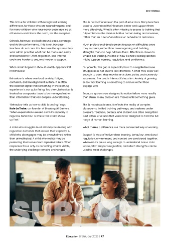 in behaviour. struggle does not always look dramatic. A child may cope well
