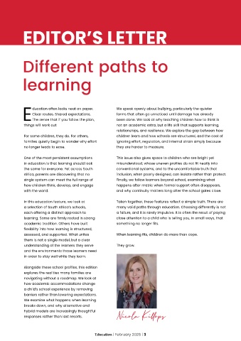 a selection of South Africa’s schools, many valid paths through education. Choosing differently is not