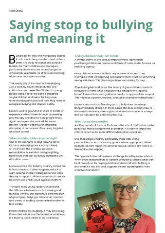 Louise explains that bullying is rarely carried out and what it is not, the book supports clearer reporting and more