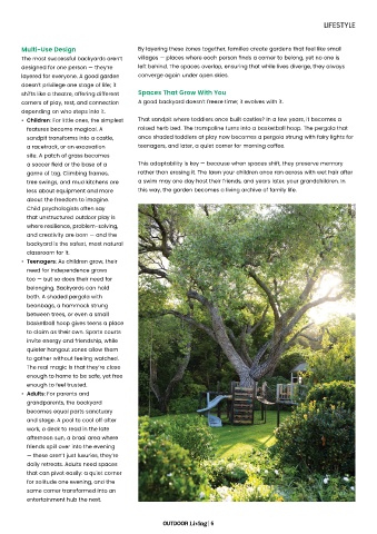 Multi-Use Design By layering these zones together, families create gardens that feel like small