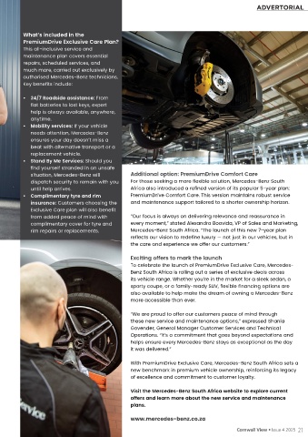 and maintenance plan designed to bring journey in a Mercedes-Benz is supported by world-class With PremiumDrive Exclusive Care, Mercedes-Benz South Africa sets a