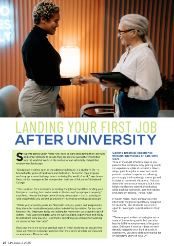 tudents across South Africa now need to start considering their job hunt Gaining practical experience