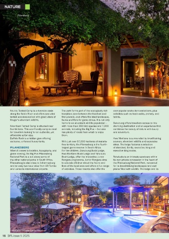 exclusive, unfenced luxury tents. With just over 57,000 hectares of malaria- scenery, abundant wildlife and expansive