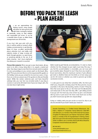 Jeanette Furstenburg is a Certified Animal Behaviourist. She
