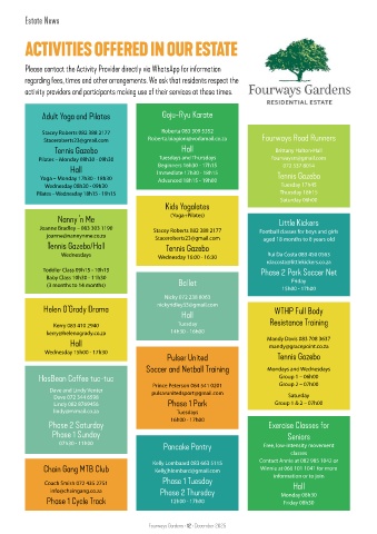 ACTIVITIES OFFERED IN OUR ESTATE