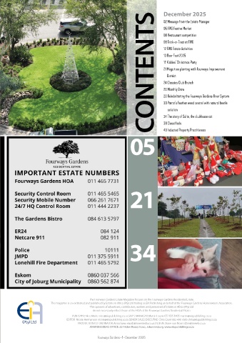 The magazine is co-ordinated and published by Estates in Africa (Pty) Ltd trading as EIA Publishing on behalf of the Fourways Gardens Homeowners Association.