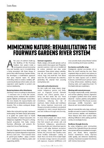 partnership with Fourways Gardens Estate, trap silt, and provide shelter for aquatic vegetated strips use dense root systems to