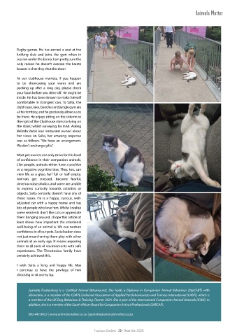addition, she is a member of the South African Board for Companion Animal Professionals (SABCAP).