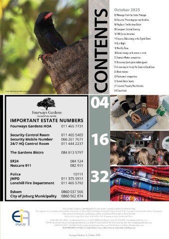 contact enrol@dainferncollege.co.za today. The magazine is co-ordinated and published by Estates in Africa (Pty) Ltd trading as EIA Publishing on behalf of the Fourways Gardens Homeowners Association.