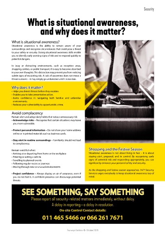 • Arriving at or departing from home or the workplace Situational awareness is not about living in fear – it is about