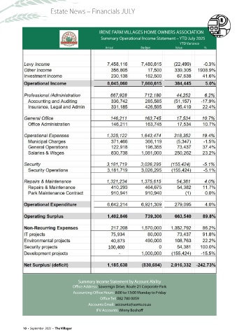 Summary Operational Income Statement – YTD July 2025