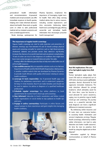 Department of Health and the World Health Organisation. MyDynamics, of ex-Springbok rugby hero, Rob