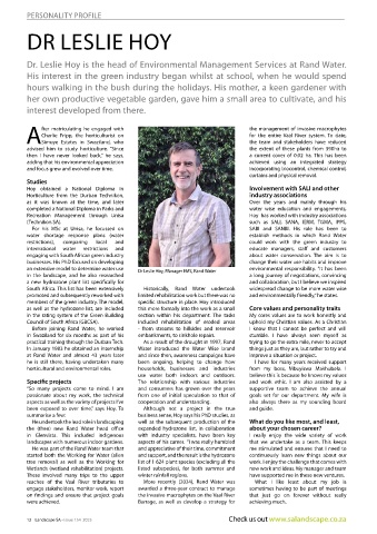 an extensive model to determine water use Dr Leslie Hoy, Manager EMS, Rand Water environmental responsibility. “It has been