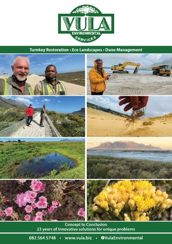 Turnkey Restoration • Eco Landscapes • Dune Management Concept to Conclusion 23 years of Innovative solutions for unique problems 082 564 5748 • www.vula.biz • VulaEnvironmental