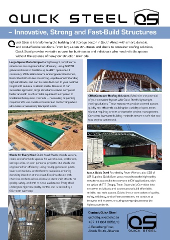 uick Steel is transforming the building and storage sector in South Africa with smart, durable,