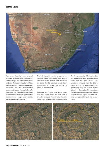 structure. On Google Earth, the Vredefort mountain ridges, the Dome Bergland, with the is the inner core, seen here in a photo
