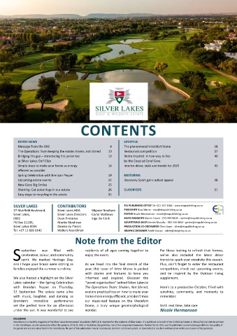Silver Lakes, Silver Lakes Directors Corlia Mathews EDITOR Nicole Hermanson - nicole@eiapublishing.co.za
