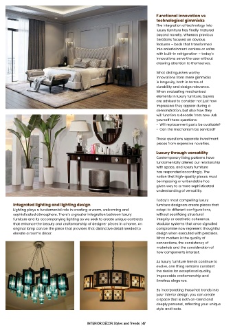 furniture and its accompanying lighting as we seek to create unique contrasts integrity or aesthetic coherence.