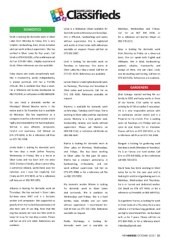 Wednesday or Friday). She is a live-in at in Silver Lakes for the past 10 years. him on 076 030 6666, or for a reference