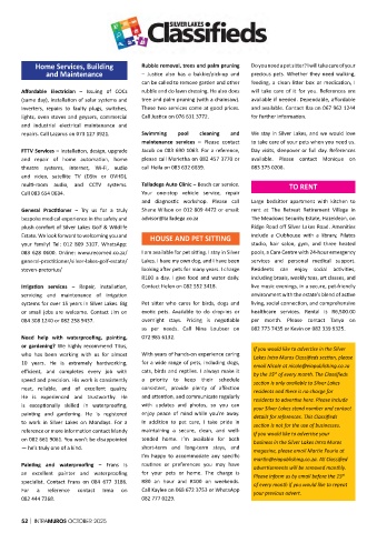 repairs. Call Lazarus on 073 127 3921. Swimming pool cleaning and We stay in Silver Lakes, and we would love