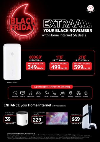 Offers valid from 7 November - 8 December 2025. Standard terms and conditions apply. Deal can be discontinued at Vodacom’s discretion. *Available in selected areas only and on