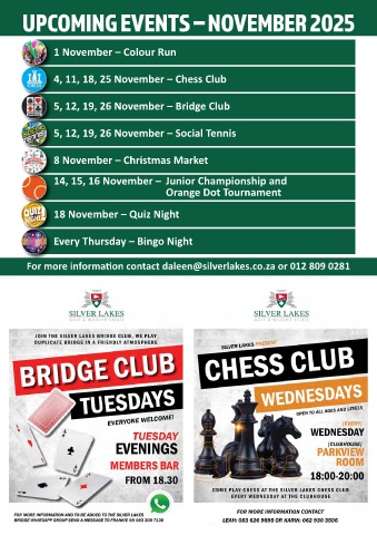 For more information contact daleen@silverlakes.co.za or 012 809 0281