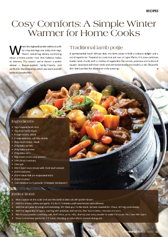 Wthere’s something deeply comforting A quintessential South African dish, the lamb potjie is both a culinary delight and a