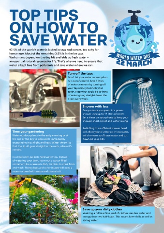 water is kept free from pollutants and save water where we can.