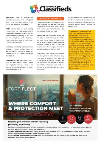 tree and palm pruning (with a chainsaw). pet sitter to look after your fur babies nicole@eiapublishing.co.za by the 15