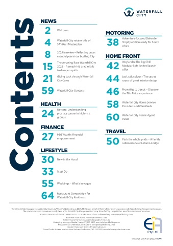 The Waterfall City Magazine is published by Estates in Africa (Pty) Ltd trading as EIA Publishing on behalf of Waterfall City and in association with Waterfall City Management Company.