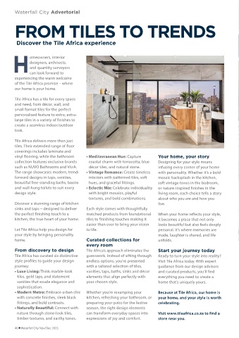 nature through stone-look tiles, can transform everyday spaces into Visit www.tileafrica.co.za to find a