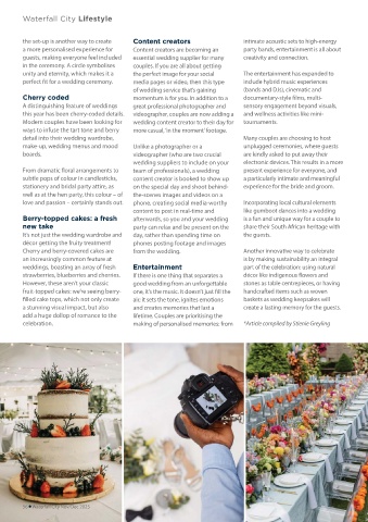 this year has been cherry-coded details. videographer, couples are now adding a and wellness activities like mini-